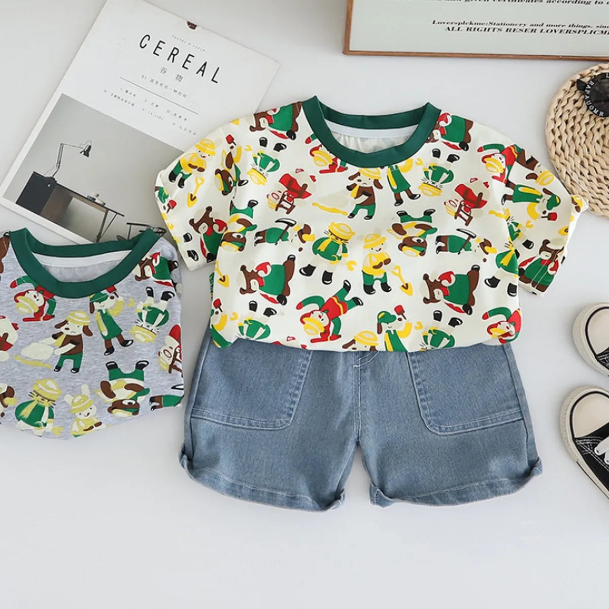 Boys' Cartoon Explorer Outfit β T-Shirt & Denim Shorts Set
