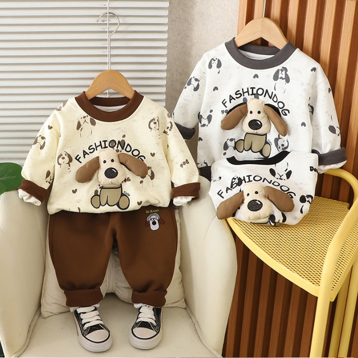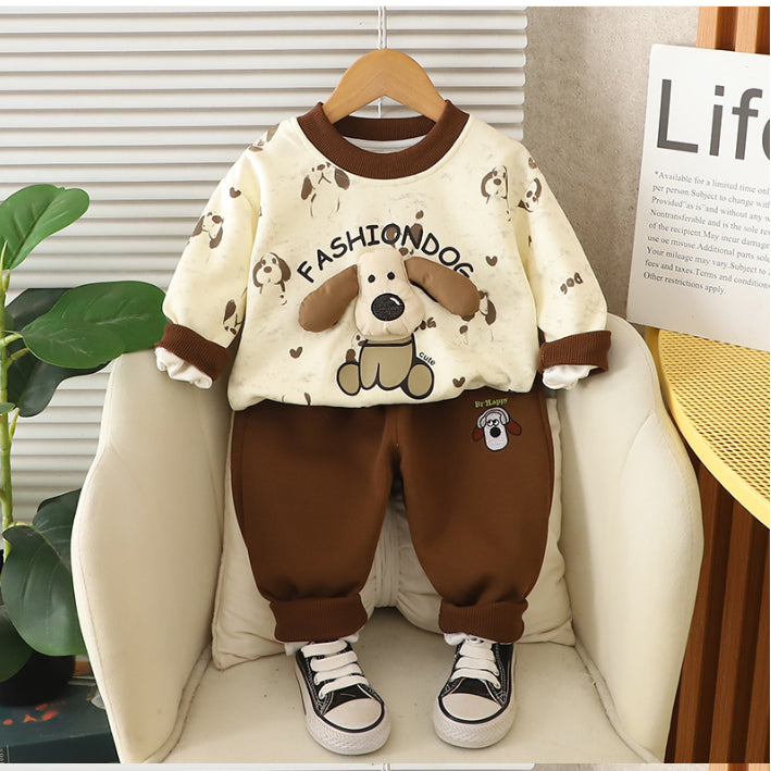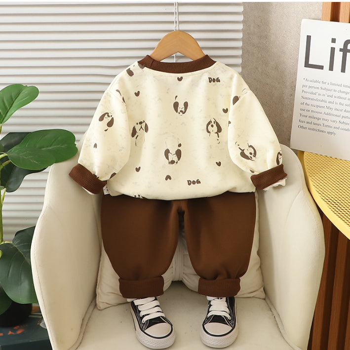 Toddler Puppy Design Cozy 2-Piece Fall Outfit (1-5 Years)