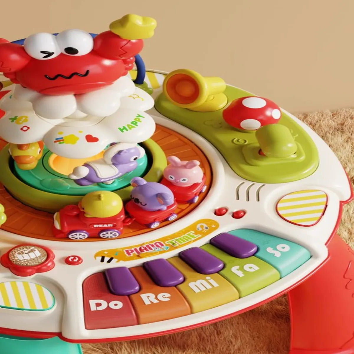 With a musical piano, rotating crab, interactive animal buttons, and a detachable rolling ball track with bunnies, it's packed with developmental fun for toddlers.
