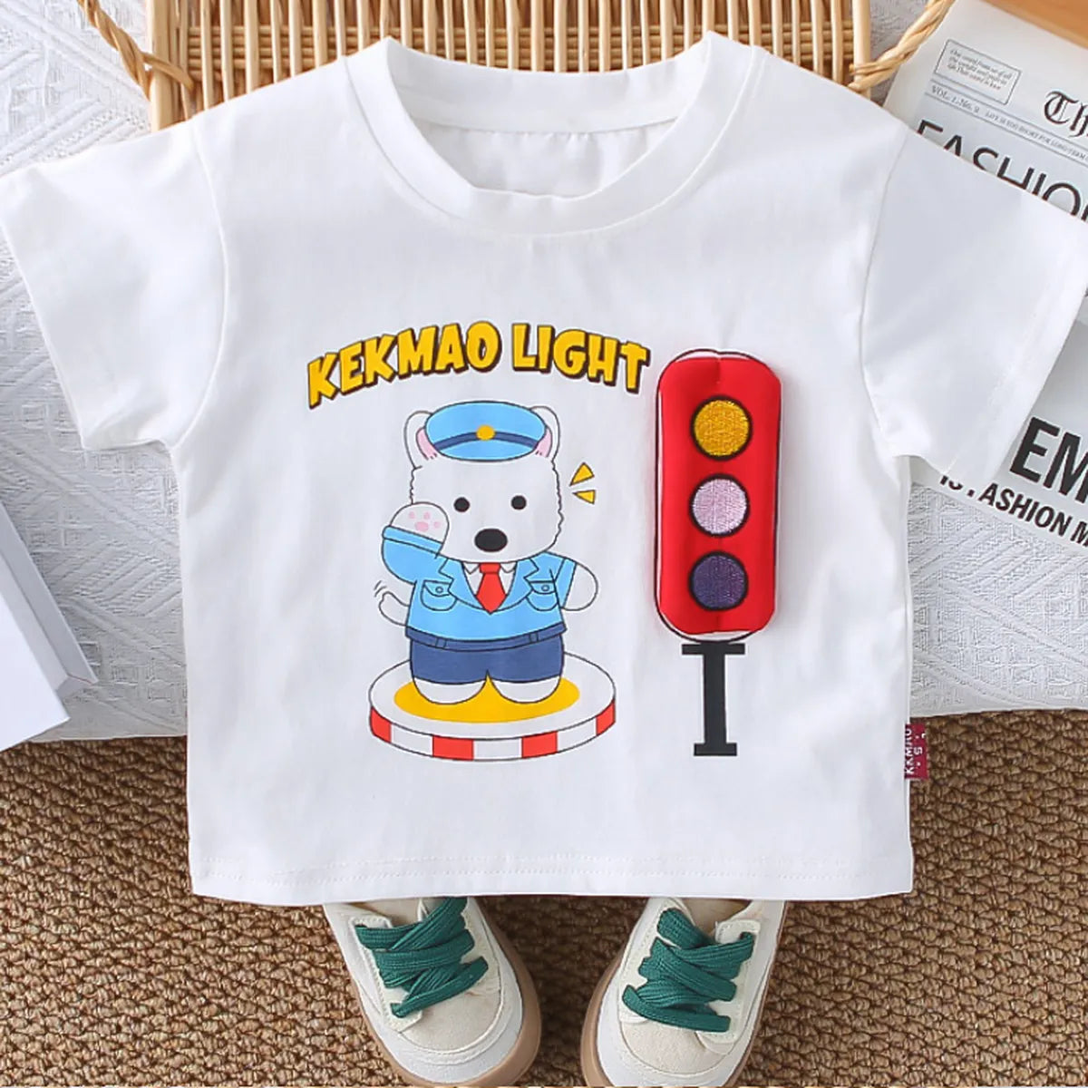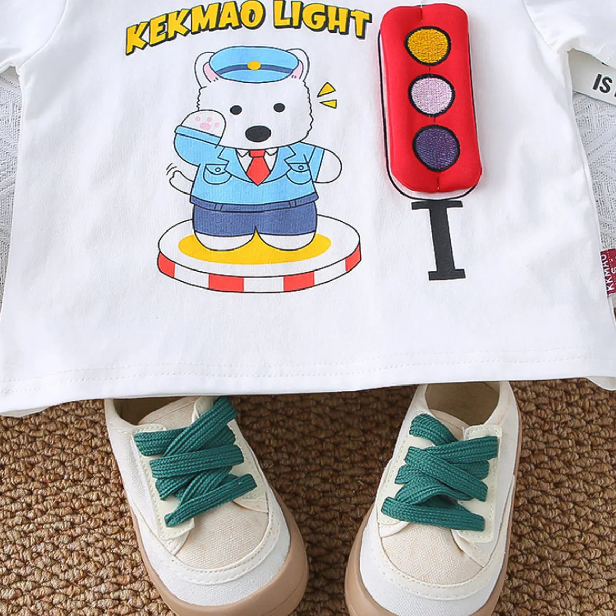 A standout outfit for playful boys this summer. Featuring a cheerful traffic bear on a soft cotton t-shirt and vibrant red shorts, this set adds personality and comfort to every day.