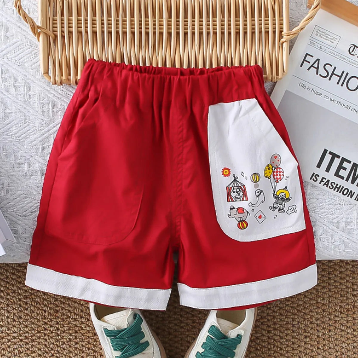 2025 Boys' Traffic Bear Summer Set – Red Shorts Edition