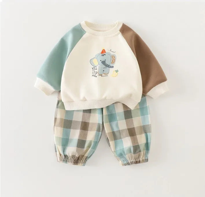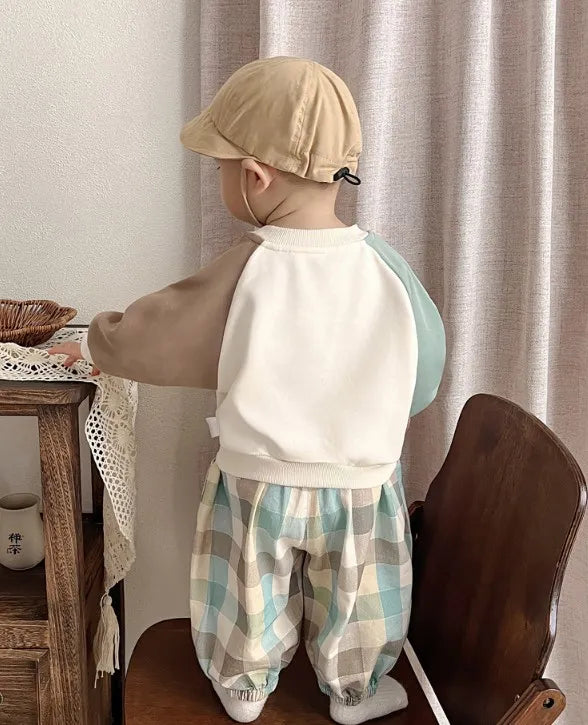 Boys Sweatshirt & Plaid Pants Outfit Set | 1–4 Years