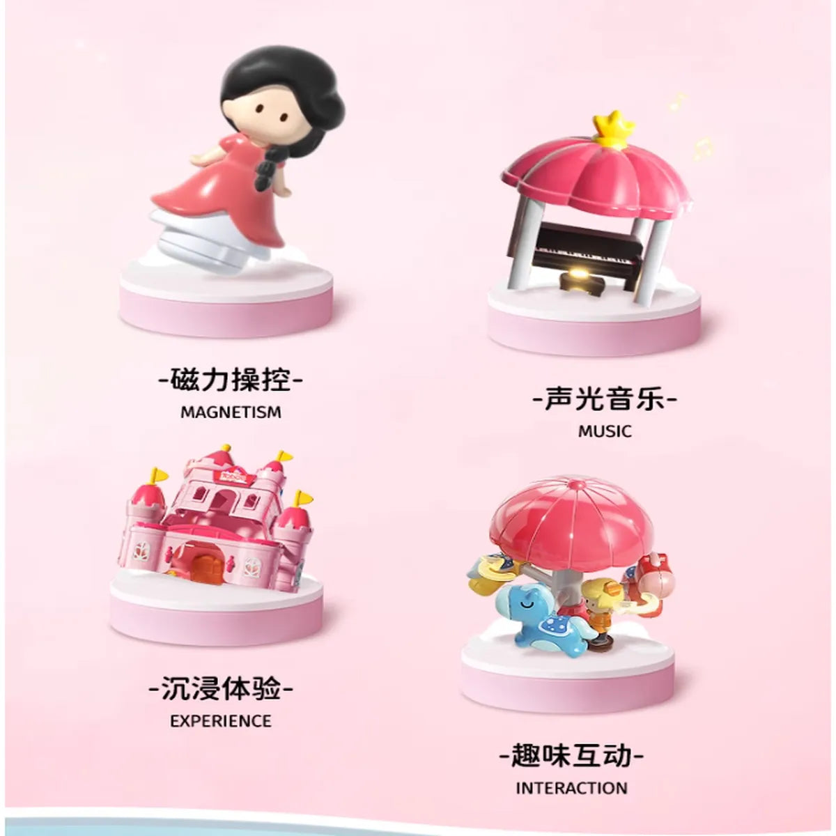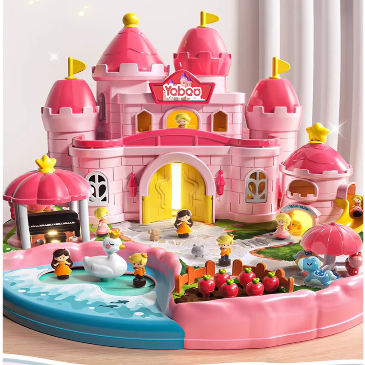 Let your child dive into a fantasy world full of charm, color, and movement. This beautifully detailed princess castle includes a working piano gazebo, a swan ride on water, a harvestable garden, and magnetic figurines to bring every corner of the playset to life.