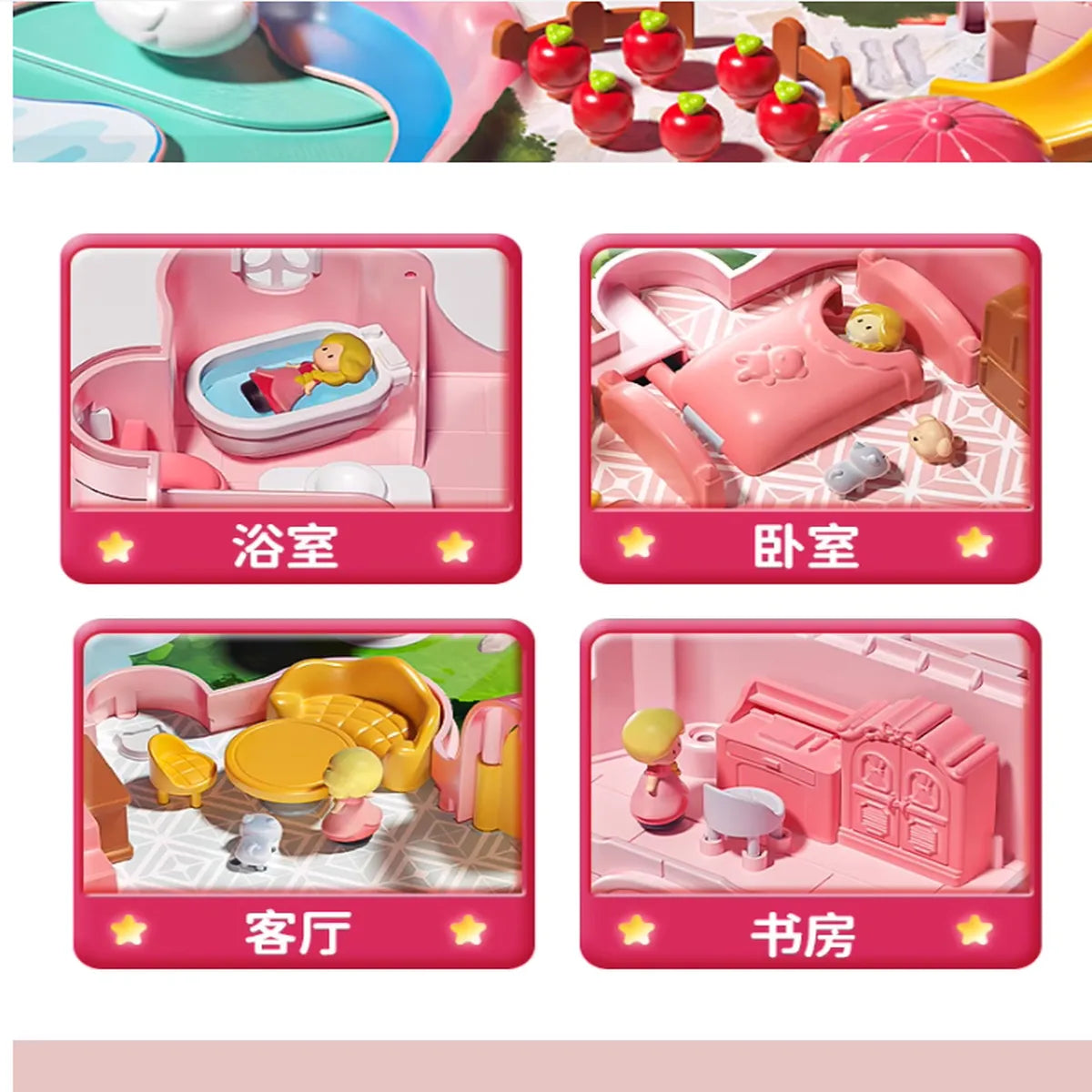 • Includes princesses, animals, fruits, and decorative elements
