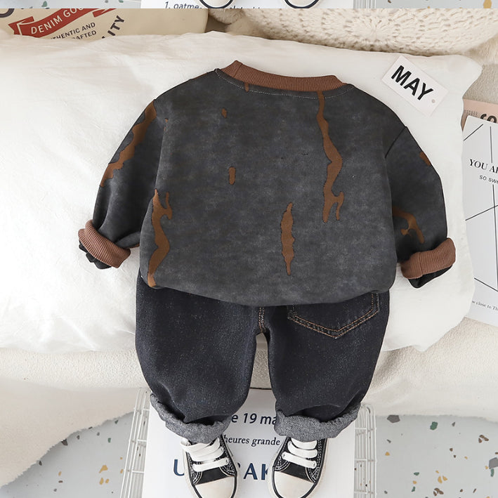 A stylish 2-piece set with a comfy sweatshirt and denim jeans, perfect for everyday wear. Comes in purple, grey, and dark grey, giving little ones both comfort and style.