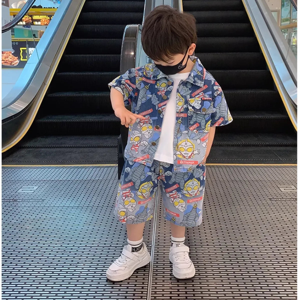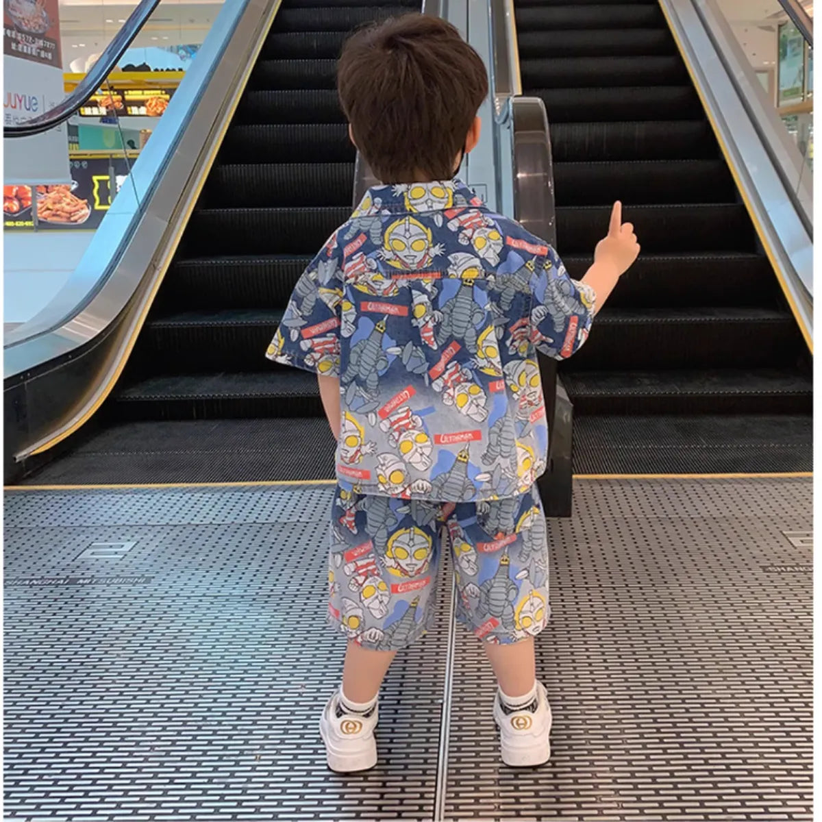 For little heroes with big energy – this full-print Ultraman set is an eye-catching choice. Featuring matching button-up shirt and shorts, made from soft breathable fabric. A bold and fun combo for summer outings, malls, and playdates.
