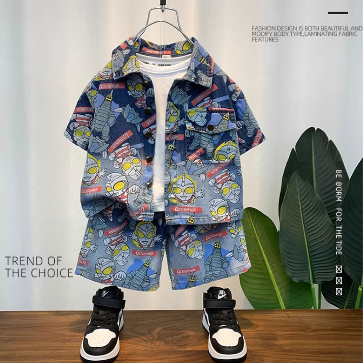 Ultraman-Themed Cartoon Shirt & Shorts Set for Boys (1-5 Years)