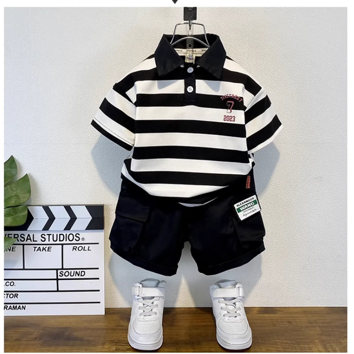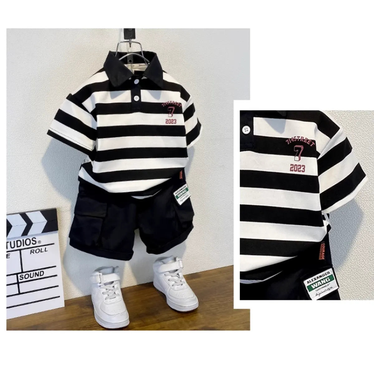 Varsity Polo & Utility Shorts Set – Bold Contrast Look (1-8 Years)
